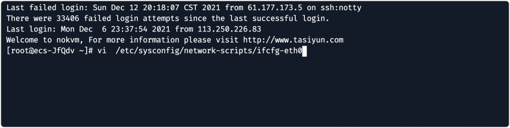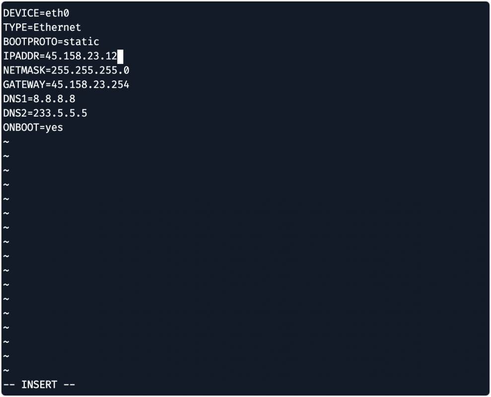 vi /etc/sysconfig/network-scripts/ifcfg-eth0