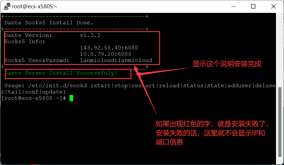 將腳本里的端口、賬號、密碼改為你自定義的密碼,也就是后續(xù)你使用代理時需要填寫的端口賬號密碼,這里演示的參數(shù)是端口1080,賬號lanmicloud,密碼lanmicloud