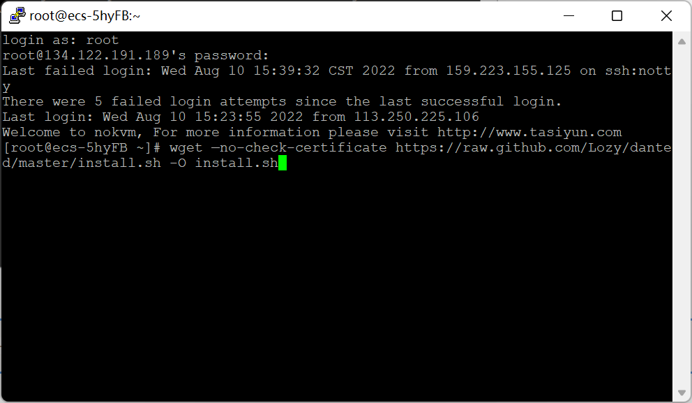 wget —no-check-certificate https://raw.github.com/Lozy/danted/master/install.sh -O install.sh