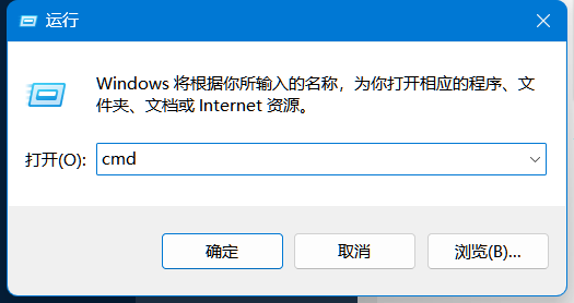 右鍵電腦左下角的Windows圖標,點擊運行,輸入cmd,然后點擊確定