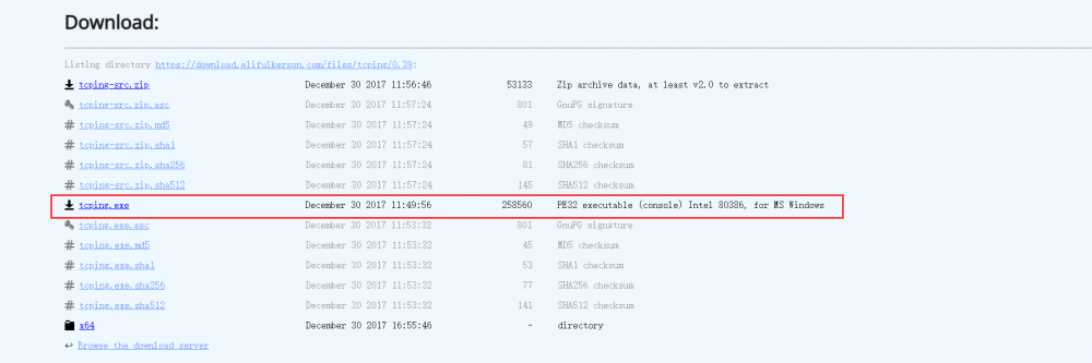 進入下載頁面,選擇tcping.exe后下載到電腦本地。